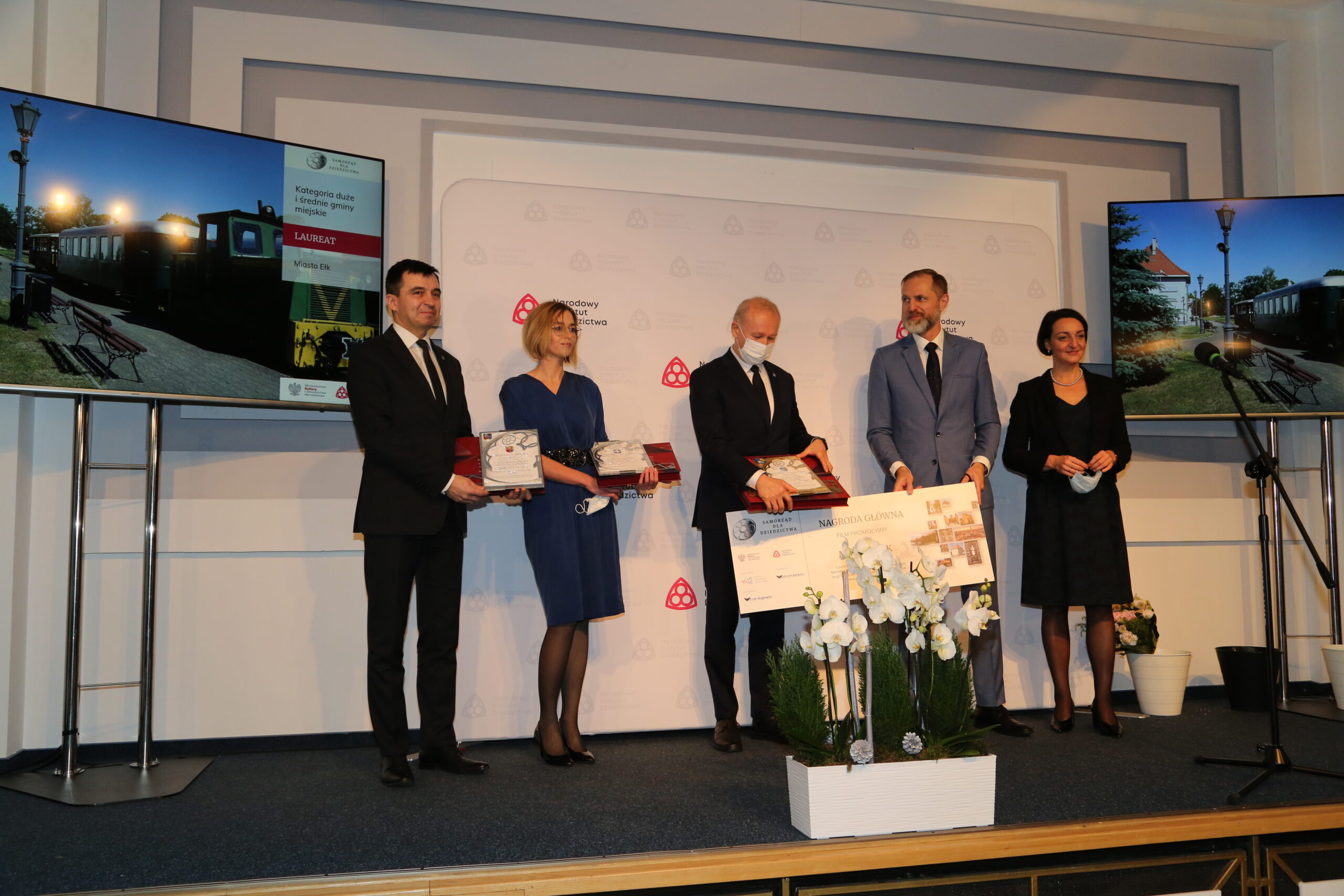 Laureatem w kategorii duże i średnie gminy miejskie zostało miasto Ełk, które zdaniem Jury wnikliwie przeanalizował zasób swojego dziedzictwa kulturowego i wzorowo wypełniło ustawowy obowiązek opieki nad zabytkami. Miasto dostrzegło tkwiący w tym zasobie potencjał i skutecznie wykorzystało go dla rozwoju społecznego, ekonomicznego i tożsamościowego miasta. Dobrze zaprojektowane i konsekwentnie realizowane zadania pozwoliły na przywrócenie miastu i mieszkańcom unikalnych zabytkowych przestrzeni, takich jak zaadaptowana na potrzeby muzeum stacja kolei wąskotorowej. Istotną cechą działań podjętych w Ełku jest włączenie w realizację założeń Gminnego Programu Opieki nad Zabytkami społeczności miasta. Dzięki temu mieszkańcy stanowią nie tylko odbiorców, ale także inicjatorów i twórców licznych imprez nawiązujących do lokalnej historii i tradycji. Jury szczególnie doceniło fakt, że samorząd dostrzegł potrzebę stworzenia miejskiego systemu ochrony dziedzictwa, który zakłada podejmowanie długofalowych i kompleksowych działań rewitalizacyjnych, remontowo-konserwatorskich i monitorujących oraz stworzenie systemu dotacji.