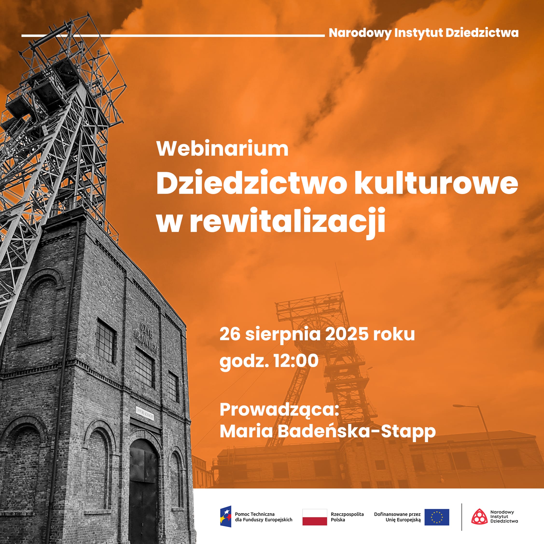 Webinarium jest realizowane w ramach Projektu „Centra Kompetencji ds. Rewitalizacji w Narodowym Instytucie Dziedzictwa”, współfinansowanego ze środków Programu Pomoc Techniczna dla Funduszy Europejskich na lata 2021-2027.